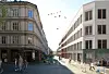 Til v. slik det ser ut i dag, mens bildet til høyre viser hvordan det kan bli seende ut i Markveien.Illustrasjon: Volum og Høyder