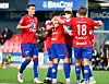 Endelig var det tid for Skeid å juble igjen. Her tar Simen Kvia-Egeskog (nr. 27) imot gratulasjoner fra lagkameratene etter 2–0-måletFoto: Anders Vindegg
