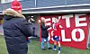 Dette må han vende seg til. Alle mediefolkene på Nordre Åsen ville vite mer om 17-åringen Luca Høyland. Her intervjues han av fotballekspert Nora Johnsen.Foto: Anders Høilund
