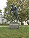 Hans Nilsen Hauge står på sokkel utenfor Uranienborg kirke. Foto: Kjersti Opstad