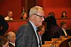 Her har SVs Ivar Johansen akkurat holdt sitt innlegg der han forsvarer de rødgrønne byrådspartienes beslutning om å ikke stemme for husleie-kuttet. Fotograferingen skjer, i tråd med bystyrets regler, fra presselosjen under møtets gang. Foto: Arnsten Linstad