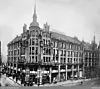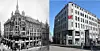 Til venstre er Hasselgården med sin opprinnelige fasade fra 1902. Til høyre slik bygget har sett ut fra rundt 1970 og frem til i dag. Fotomontasje med bilder fra: L. Szacinski / Oslo museum, 1908 og Chris Nyborg / Lokalhistoriewiki