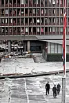 Terroren rammet Norge. Politiet i arbeid utenfor høyblokka etter terrorhandlingene mot regjeringskvartalet og Utøya 22. juli 2011. Foto: Aleksander Andersen / Scanpix.