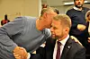 Helseminister Bent Høie (H) fikk mange klemmer av Jobbens brukere da han kom til Arups gate i Gamlebyen og fortalte at regjeringen gir tre millioner kroner ekstra til Frelsesarmeens arbeidstiltak for rusavhengige og psykisk syke i Oslo. Foto: Arnsten Linstad