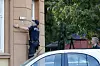 Her rygger politiet inn til portrommet i Christies gate 23, og den pågrepne mannen blir rett etterpå kjørt bort. Foto: Christian Boger
