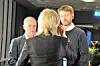 Eirik Lae Solberg og Jan Tore Sanner intervjues av NRKs Lisbet Skei under Høyres valgvake i Oslo. Foto: Arnsten Linstad