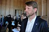 Høyres gruppeleder, Eirik Lae Solberg, fulgte nøye med da Hafslund-kjøpet ble offentliggjort i Rådhusets Munch-sal i morges. Foto: Arnsten Linstad