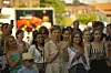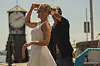 Bryggedans i sommerheten. Foran klokketårnet på Tingvallkaia ved Aker brygge kunne alle som var interessert lære seg swing, salsa, tanog og familiedans. Foto: Morten Lauveng Jørgensen