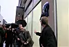 Håkon Wium Lie avduker skiltet der det står: "Her ble nettleseren Opera og Qt utviklet 1998 - 2012. Visningsmotorene Presto og Webkit gjorde internett på mobiltelefoner mulig". Foto: Audun Engh