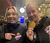 Linn Aakre og Kristin Antonsen er fornøyd med å ha blitt seriemestere i kvinner 1.divisjon i helgen. Foto: Grüner hockey