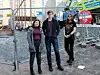 Elvebakken-elevene Inga Marie G Evang, Magnus Winther og Jesper Nordang Halvorsen (t.h) er fornøyde med å ha vært med på å endre fasadefargen på nye Vega Scene. Men de ville gjerne bevart grafittien fra gamle Hausmania også. Foto: Christian Boger