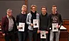 Fra venstre står OL-ansvarlig Hans Petter Hersleth, Johannes Løken, Torje Igland Hellerslia, Audun Bergan og Alexander Kval. Foto: Elina Melteig / Universitetet i Oslo