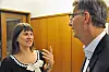 Idrettsbyråd Rina Mariann Hansen (Ap) støter på finansbyråd og partifelle Robert Steen etter å ha blitt intervjuet av VårtOslo om problemene på Valle Hovin. � Det står ikke på penger, sier finansbyråd Steen spøkefullt. Før han legger til at idrettsbyråder aldri får nok penger. Foto: Arnsten Linstad