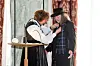 – Hele Norge sang din versjon av "Barn av regnbuen" etter terrorangrepene 22.juli 2011, sa ordfører Borgen da hun delte ut St. Hallvard-medaljen til Lillebjørn Nilsen. Foto: Oslo kommune/Sturlason