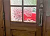Da politiet kom viste det seg at vindusruta i inngangsdøren til oppgangen i bygården var knust. Og det var blodspor på veggene i oppgangen. Foto: Jorunn Mathisen