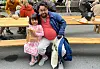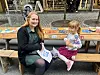 Jose Bryhn (40) og datter Luica (6) tok en pust i bakken og litt lunsj innimellom aktivitetene etter ansiktsmaling.Foto: Vilde Nyseth