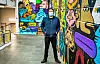 Kunstner og Trosterud-gutt Øivin Horvei står bak den nye kunstveggen på Trosterud tbanestasjon.Foto: Katrine Holland / Sporveien