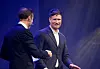 Espen Holmboe Bang (til h.) gratuleres av Espen Giertsen (med ryggen til) under utdeling av Michelin-stjerner i fjor.Foto: Ole Martin Wold / NTB