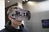 En av de besøkende får prøve VR-brillene. Foto: Olav Helland