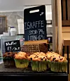Langs disken kan man la seg friste av både muffins, kanelboller og påsmurt