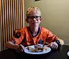Jonathan Aurtun (10) er en gjestene som besøker Glutenfrihuset denne tirsdagen. Han har cøliaki og er ikke vant til å kunne velge og vrake på café. Valget falt til slutt på bestselgeren kanelbolle: – Den var veldig god!Foto: Oda Guleng