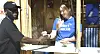 Marthe Kristiansen serverer kaffe til torsdagens første kunde i boden på Elgsletta.Foto: Christian Boger