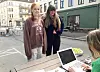 Ute i sola i en bilfri Krebs gate satt Saara Sipilä-Kristoffersen og registrerte de som ville på audition.Foto: Anders Høilund