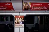 Reklameplakatene til partiet Fred og rettferdighet (FOR) på T-banen ble mandag kveld tatt bort av aktivister. Partiet, budskapet på plakatene og milliardæren som sponset dem har skapt debatt både før og etter.Foto: Beate Oma Dahle / NTB