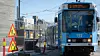 Det er ikke mye plass for fotgjengere når trikken runder hjørnet inn i Dokkveien