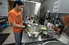 I kjøkkenet på seniorsenteret jobber også Richard Cuevas fra Filippinene. I dag drar han godt rundt i gryta, som skal bli ragusaus til pasta. Han forteller at seniorgjestene har vendt seg godt til mat fra flere verdensdeler.