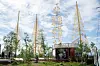 Fem gull-konstruksjoner i installasjonen skal symbolisere de fem krigsårene, mens en 26 meter høy søyle skal hedre krigsseilerne og marinen.Fredrik Hagen / NTB scanpix