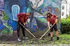 Omgitt av asfalt og gamle bygårder jobber ungdom i Gamle Oslo som bønder