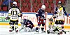 Men så skal det, med fire minutter igjen å spille av perioden, endelig komme en sjanse og et mål for hjemmelaget. Etter litt fram og tilbake foran gjestenes mål kan til slutt kaptein Tobias Lindström, etter "pasning" via tverrliggeren og skudd fra Axel Sundberg, sørge for ledelse til hjemmelaget.