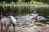 Thomas Aas (54) med hunden Fryd (2) tok seg et kveldsbad på Frysja badeplass i Akerselva torsdag kveld.