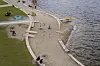 ved badeplassene.