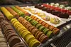 Franske makroner ligger på rekke og rad i disken på Fransken.Foto: Olav Helland