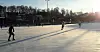 Romjul og sol gir lange skygger. Sjelden har vi sett så langbeinte bandyspillere som på Bergbanen andre juledag.Foto: Anders Høilund