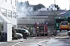 Politiet har sperret av et stort område etter at brannvesenet anbefalte en sikkerhetsavstand på 300 meter. De har nå kontroll på brannen, men skarpskyttere forsøker å skyte hull på de resterende gassflaskene.