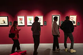 folk om gatekunst. Utstillingen er ikke autorisert av Banksy, som har bevart
