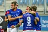 Vålerengaspillerne jubler for scoringen til Bård Finne under eliteseriekampen i fotball mellom Vålerenga og Sandefjord på Intility Arena i Oslo.