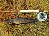 Da er det greit å ta med fisk hjem iblant for en sjelden fiskemiddag. Jeg tok derfor livet av fisken før den uvitende fikk posere for kameraet. Med fisk på først kastet følte jeg meg omtrent som om jeg var verdens beste fluefisker. Og etter et par kast til så beit det på en fisk til. Men om den ikke tok ordentlig eller jeg var litt tidlig med tilslaget er uvisst. Som vanlig skylder jeg på fisken. Flua kom hvert fall ut av vannet uten en fisk på.
