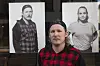 Nicolas (bakerst) og Håvard (fremst) henger opp bildene fra utstillingen for BD57, hvor de ønsker å vise de som har fått satt livet på pause.Foto: Olav Helland