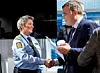 Politimester Beate Gangås (til v.) mener kriminalitet begått av såkalte unge gjengangere er komplekts. Her hilser Gangås på justisminister Jøran Kallmyr (Frp). Foto: Stian Lysberg Solum / NTB scanpix