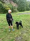 Beate She Klingenberg og Bruno på ni måneder betaler heller for å trene et annet sted, da tilbudet ved friområdet for hund på Årvoll har sine mangler.Foto: Privat