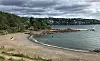Sydstranda en dag denne uken, hvor antall gjester ble påvirket av fukt fra himmelen.Foto: Magda Zhu Grov