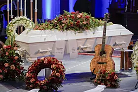 Gitaren sto ved den folkekjære artistens side da avskjeden ble tatt.Foto: Heiko Junge / NTB