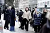Mange ventet utenfor kirken før gravferdsseremonien for Ole Paus.Foto: Heiko Junge / NTB