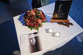 Program for begravelsen med portrett av Ole Paus.Foto: Heiko Junge / NTB
