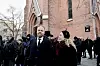 Kulturminister Lubna Jaffery talte under gravferdsseremonien for Ole Paus i Kulturkirken Jakob. Her fra da hun ankom kirken.Foto: Heiko Junge / NTB
