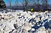 Fjorårets snørike vinter skapte store problemer med å bli kvitt snøen fra hovedstadens veier. Løsningen ble opprettelsen av midlertidige snødeponier, som her ved Maridalsvannet. Kommunen håper et framtidig snømelteanlegg på Åsland vil løse problemet. Foto: Heiko Junge / NTB scanpix